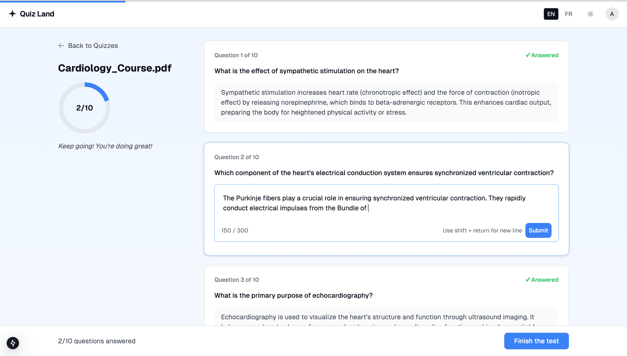 Test deeper understanding with open-ended questions and receive personalized AI feedback on your answers.